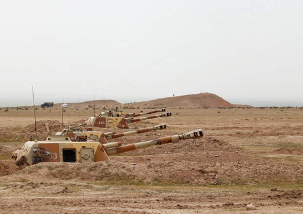 Батареи самоходных артиллерийских гаубиц «Акация» и «Гвоздика» сосредоточенным огнем нанесли удар по площадным и одиночным целям условного противника, находящимся на обратных скатах гор.