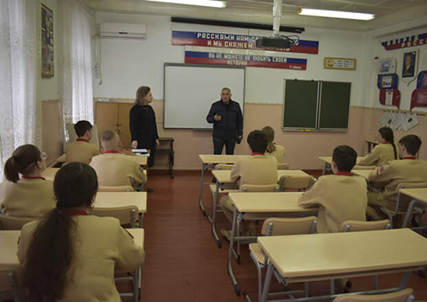 После лекции историк продолжил общение с учениками, ребята обсуждали услышанное и делились впечатлениями о подвигах летчиков Романа Филиппова и Олега Пешкова, отдавших свои жизни в борьбе с терроризмом.