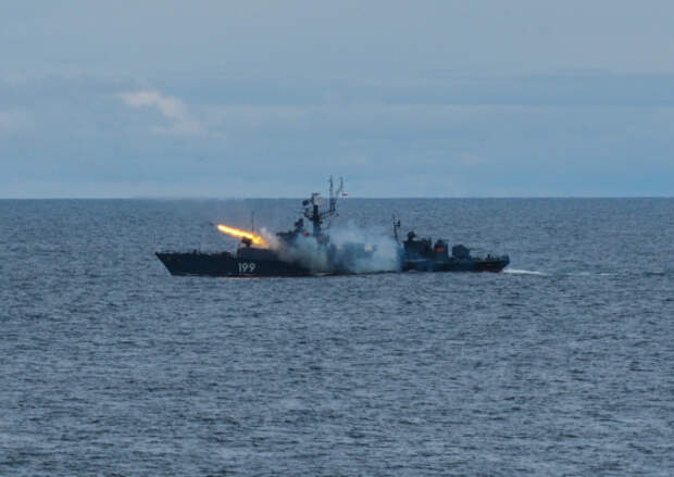 Экипаж малого противолодочного корабля выполнил стрельбу по имитированной воздушной цели зенитным ракетным комплексом «Оса-МА», а также артиллерийской установкой АК-176М и скорострельным 30-мм артиллерийским комплексом АК-630М.