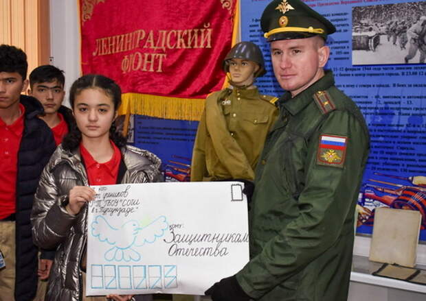 Председатель профсоюза Гафур Шерматов рассказал ребятам про боевой путь соединения и показал оружие и военную форму разных времён, которые хранятся в музее боевой славы.