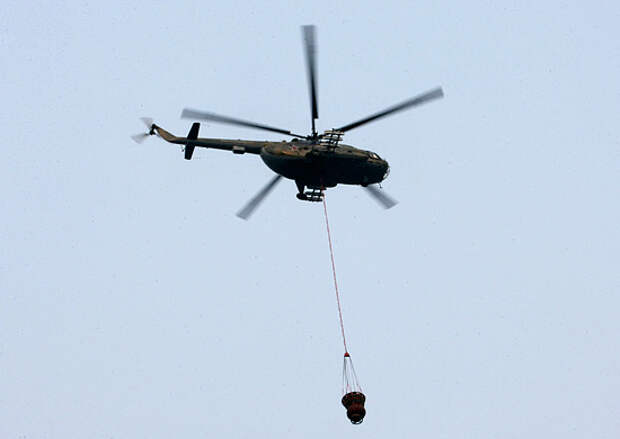Экипажи Ми-8АМТШ произвели забор воды в водоеме и произвели слив воды на очаг условного возгорания, всего был произведен сброс более 20 тонн воды.