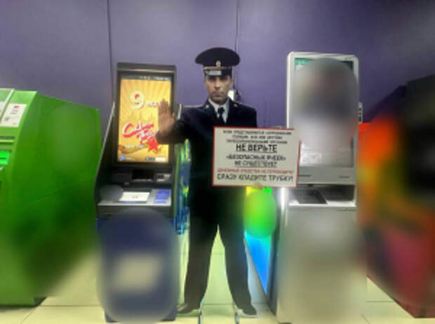 Для предотвращения денежных переводов мошенникам сотрудники полиции разместили возле банкоматов в торговых центрах ростовые фигуры полицейских с информационной табличкой и напоминаниями о мошеннических манипуляциях. Макет сотрудника полиции содержит предостережения, которые помогут не попасться на уловки дистанционных мошенников.