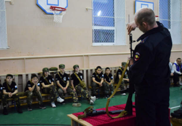 В рамках мероприятия Евгений Михеев рассказал ребятам о тактико-технических характеристиках пистолета Макарова и автомата Калашникова, а также продемонстрировал сборку и разборку оружия.