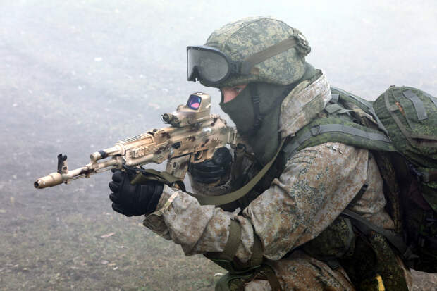 Подгруппы усиления под прикрытием бронемашин «Тигр», используя сосредоточенный огонь из автоматов АК-74 и пулеметов «Печенег» уничтожили условного противника.