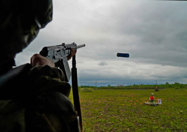 Личный состав огнем из ружей Сайга, Вепрь, МР-153 уничтожил воздушные мишени противника.